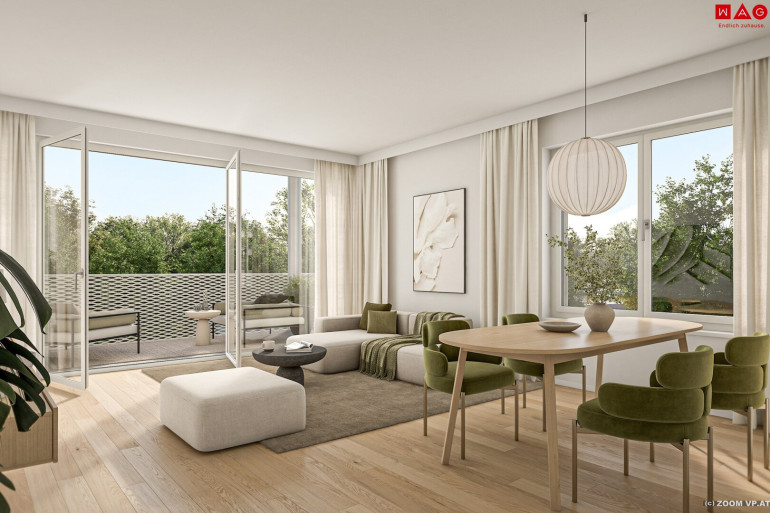 Wie bei allen WAG-Neubauprojekten steht der Einsatz energieeffizienter und umweltschonender Technologien im Vordergrund: Die Geschoßdecken verfügen über eine integrierte Deckenheizung, die in den Wintermonaten nicht nur wohlige Wärme erzeugt, sondern auch im Sommer zur sanften Temperierung eingesetzt werden kann. Das Flachdach wird begrünt und mit einer Photovoltaikanlage ausgestattet – das sorgt für ein besseres Mikroklima sowie ein Plus an Nachhaltigkeit.