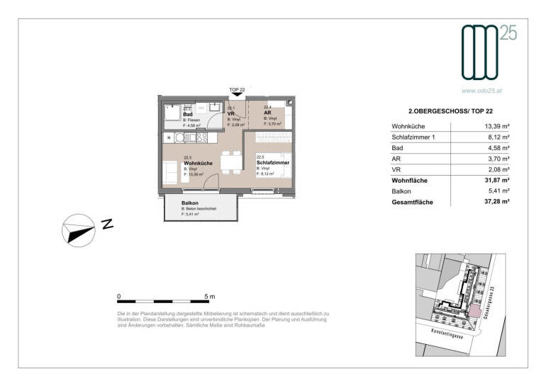 ODO25 befindet sich in attraktiver Lage der Odoakergasse im 16. Wiener Gemeindebezirk und überzeugt durch eine hervorragende Anbindung an die Wiener Innenstadt sowie an zahlreiche Naherholungsgebiete. Die ausgezeichnete öffentliche Verkehrsanbindung mit mehreren Straßenbahn-, Bus- und S-Bahn-Linien ermöglicht schnelle und flexible Mobilität in alle Teile der Stadt. Grün- und Freizeitflächen wie Wilhelminenberg, Steinhofgründe, Kongreßpark und Kongreßbad sind in wenigen Minuten erreichbar und bieten vielfältige Erholungsmöglichkeiten. Schulen, Kindergärten, medizinische Versorgung sowie Einkaufsmöglichkeiten befinden sich in unmittelbarer Nähe. Der nahegelegene Brunnenmarkt und der Yppenplatz ergänzen das Angebot durch urbanes Markt- und Gastronomieflair.Beschreibung der Immobilie