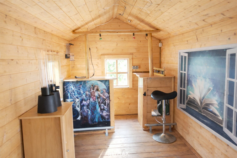 - Holzhütte mit Aufenthaltsräumen und Holzterrasse – ideal für gemütliche Stunden im Freien