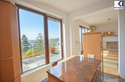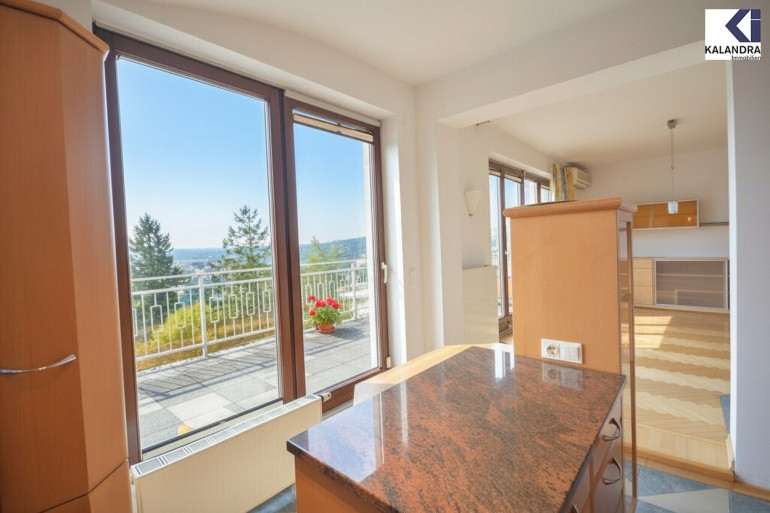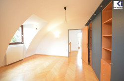 Diele, Wohn-& Eßzimmer mit offenem Kamin und anschließender, offenen Küche (ca. 44m²), direkter Ausgang auf eine südseitige Terrasse (ca. 27m²) mit Fernblick über Wien, ein Schlaf- oder Arbeitszimmer (ca.19m²), Wannenbad mit WC, Abstellraum.