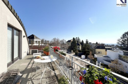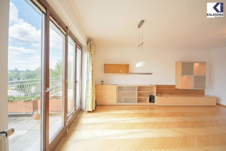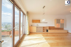 In sonniger Grünlage liegt diese zweigeschoßige Dachgeschoßwohnung in einem Neubaugebäde aus den 80er-Jahren und bietet neben zwei großen Terrassen folgende