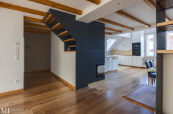 Die hochwertige Ausstattung der Wohnung lässt keine Wünsche offen. Eine Außenliegende Abschattung westseitig, eine Feuerstelle sowie, Naturstein- und Parkettböden verleihen der Wohnung ein großzügiges, modernes und gleichzeitig gemütliches Ambiente.
