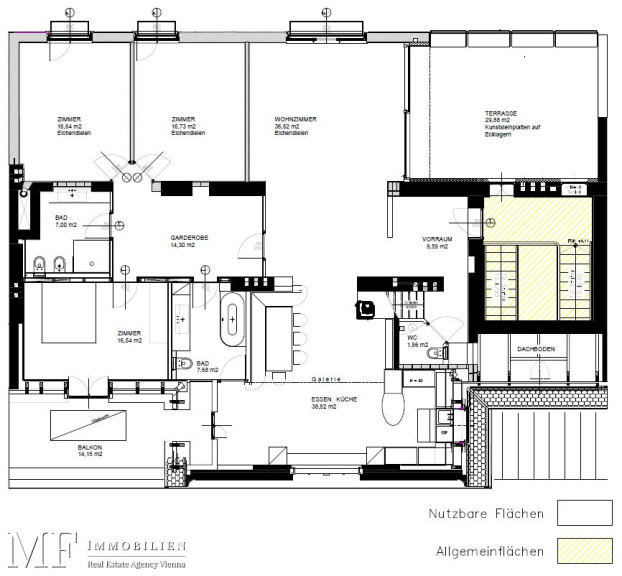 Ein Highlight dieser Wohnung sind die zwei großzügigen begrünten gartenseitigen Terrassen, die den Wohnraum perfekt erweitern und ein Balkon, welcher mit einem schönen Blick zum Entspannen und Genießen einlädt. Auch eine Galerie mit großem Arbeitsplatz rundet dieses tolle Angebot ab.
