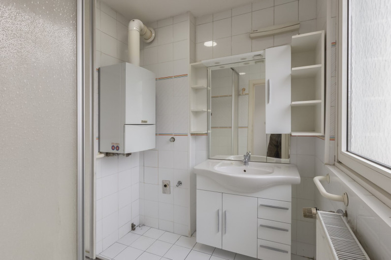 Bad mit Dusche, Fenster und Waschmaschinenanschluss,