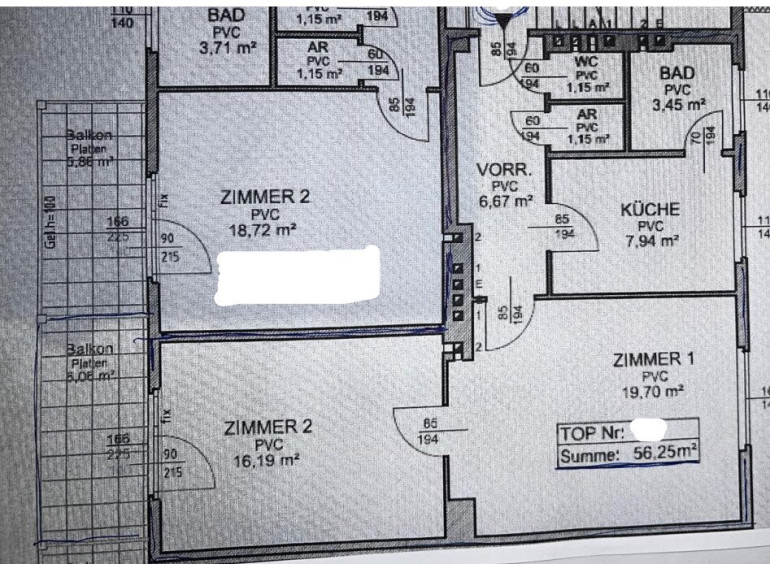 56,25m2 Wohnfläche zzgl. 6,06m2 Balkon,