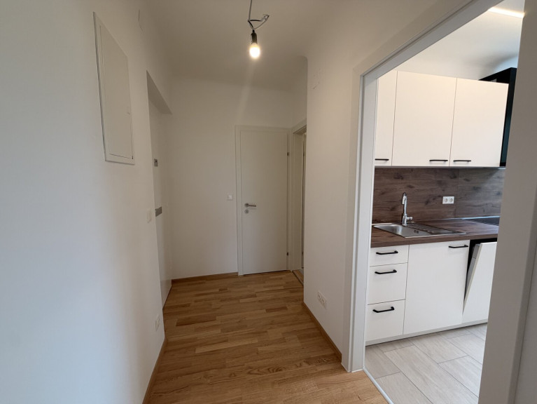 Wohnzimmer mit Zugang zum Schlafzimmer, separate Einbauküche, Vorzimmer, Bad mit Dusche und Waschmaschinen Anschluss,