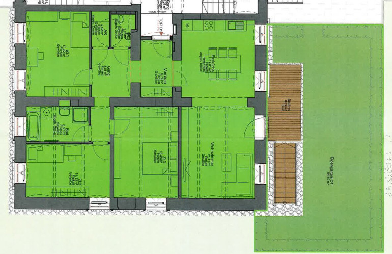 Das Meierhaus beim Palais Löwenfeld bietet bietet Ihnen auf ca. 105 m² diese traumhafte 4-Zimmer Wohnung, eine großzügige, offene Wohnküche, drei Schlafzimmer, ein Badezimmer, ein separates WC und ein Abstellraum. Das Badezimmer ist mit einer Badewanne und einer Dusche ausgestattet. Sie erreichen alle Haupträume vom Vorraum bzw. Gang. Über den Wohnbereich gelangen Sie auf den südlich ausgerichteten Balkon mit 8,20 m². Über eine Treppe gelangen Sie von dort aus in den eigenen ca. 84,47 m² großen Garten.