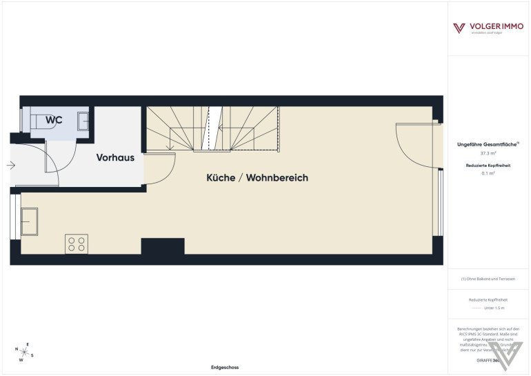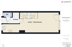 Erdgeschoß: überdachter Eingangsbereich, Vorraum mit Garderobe, WC mit Waschbecken, Küche/Wohnbereich mit Ausgang zur Terrasse bzw. in den Garten;