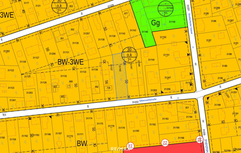 - Offene oder gekuppelte Bauweise, 30 % der Gesamtfläche sind verbaubar