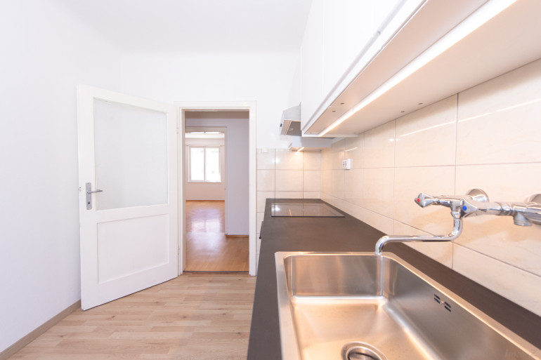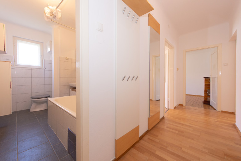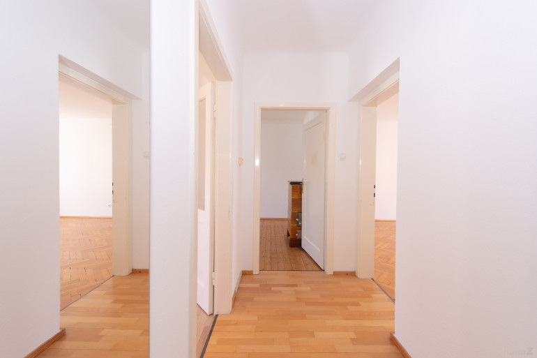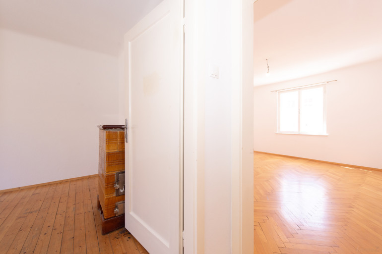 Die Wohnung befindet sich im 3. Stock eines gepflegten Wohnhauses ohne Lift. Diese Gegebenheit sorgt nicht nur für ein Plus an Ruhe, sondern wirkt sich auch positiv auf die laufenden Betriebskosten aus. Bereits beim Betreten spürt man den besonderen Charakter der Wohnung: Der teilweise erhaltene, elegante Fischgrätparkettboden sowie die klassischen Kastenfenster verleihen den Räumen einen authentischen Charme vergangener Zeiten und schaffen eine warme, einladende Wohnatmosphäre.