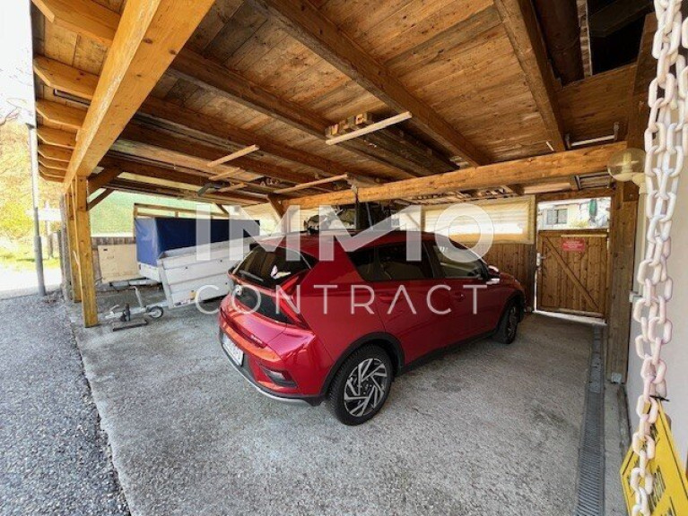 Parkett, Fliesen, Etagenheizung, Heizofen, Einbauküche, Bad mit Fenster, Dusche, Kabel/Satelliten-TV, Carport, Garage