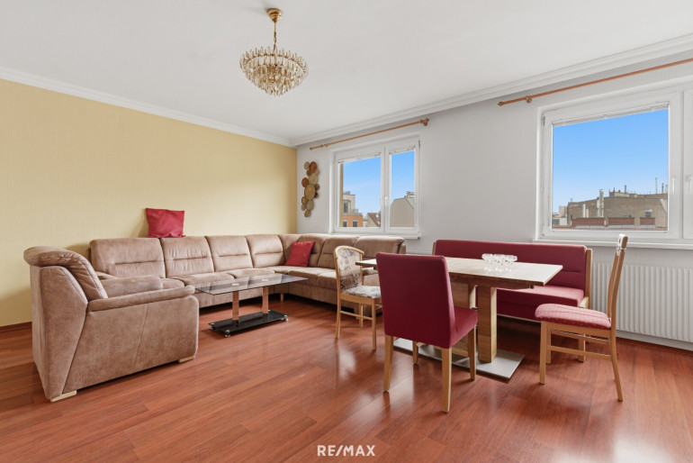 Diese ca 90 m² große 3-Zimmer-Wohnung befindet sich im 5. Stock und bietet Ihnen dank der erhöhten Lage einen angenehmen Rückzugsort mitten im urbanen Geschehen.
