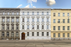 Das schöne Jahrhundertwendehaus befindet sich in unmittelbarer Nähe zum Volkertmarkt und der Taborstraße.