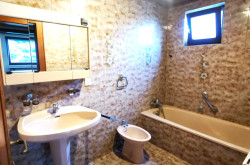 * Badezimmer mit Badewanne, Bidet, Schminktisch / Schrank & Fenster