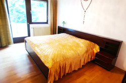 * Schlafzimmer mit Doppelbett & Zugang zum Garten