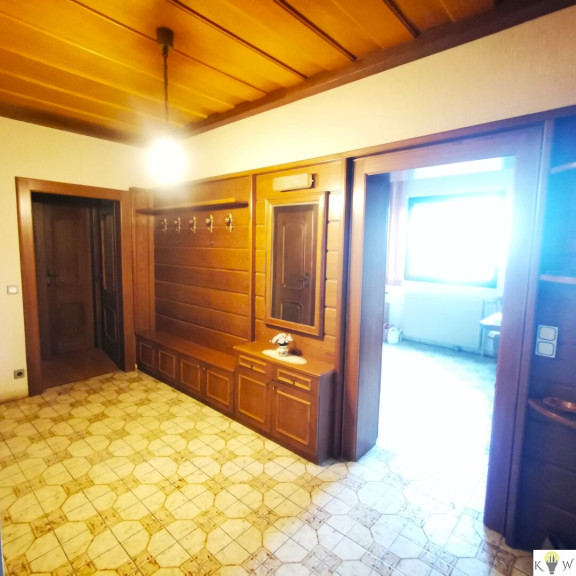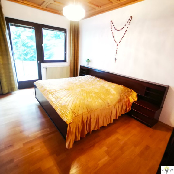 Über Gartenstufen gelangen Sie zum Windfang. Von hier führt ein Eingang in den großzügigen Eingangsbereich des Hauses. Auf der rechten Seite gelangen Sie in eine vollmöblierte Wohnung, welche für eine Pflegekraft eingerichtet wurde. Sie beinhaltet ein Vorzimmer mit Garderobe, ein Schlafzimmer, ein WC sowie ein Badezimmer.