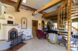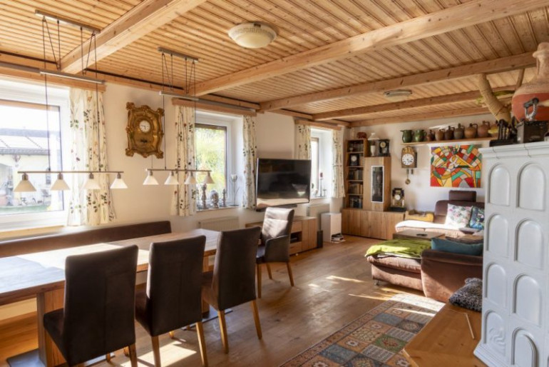 Die Heizung und Warmwasseraufbereitung erfolgt über eine Gas-Zentralheizung und 10kW-PV-Anlage samt großem Warmwasser-Pufferspeicher, welche sich im Keller befindet und einem Kachelofen zwischen Wohn- und Vorzimmer.