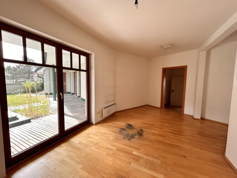 Weiters kommt man in einen schönen, offenen Raum, gut geeignet für ein Wohnzimmer, von dem aus man in weitere 8 Räume gelangt. Diese 8 Räume sind sehr unterschiedlich gestaltet und bieten viele Möglichkeiten zur Entfaltung. Außerdem gibt es einen "versteckten Raum" mit einem weiteren WC und Handwaschbecken - perfekt für den Rückzug.