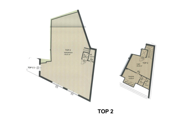Im Obergeschoss befinden sich Lagermöglichkeiten sowie Personalräume.