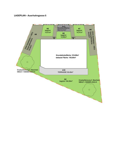 - Baurechtsgrund des Stifts Klosterneuburg mit einem Baurechtszins von 350.- monatlich