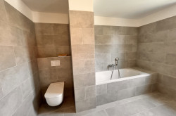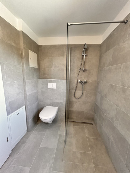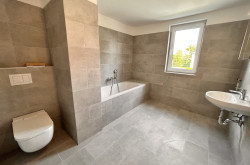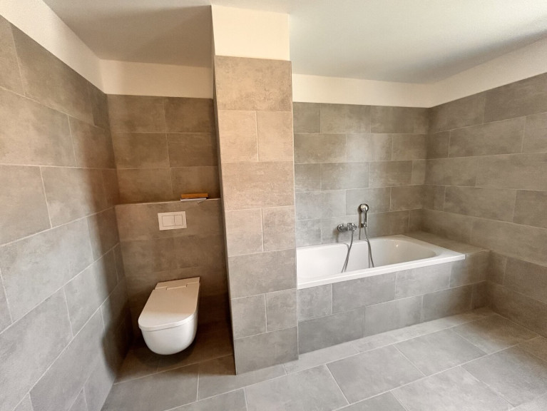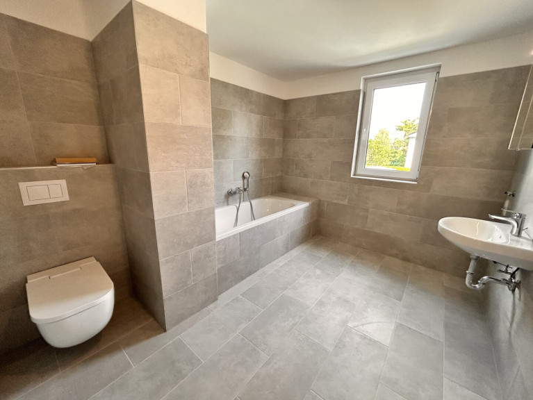 Estrichboden, Fußbodenheizung, Badewanne, Dusche, Bad mit Fenster, Parkplatz