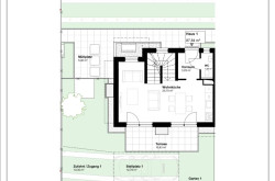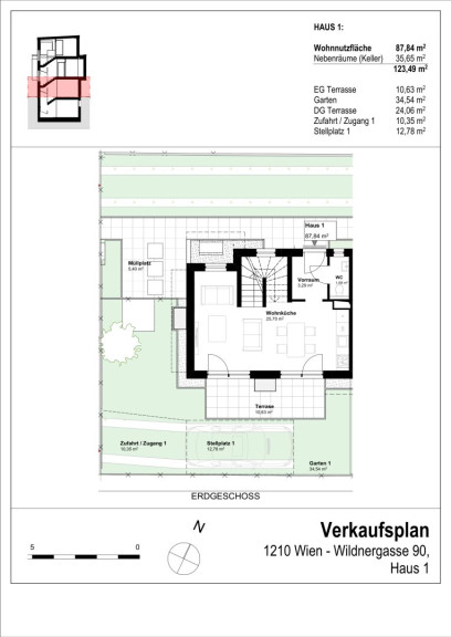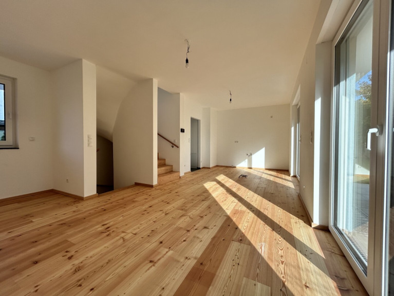 Erdgeschoss: Vorzimmer, Gäste WC sowie Wohnküche, Ausgang auf Terrasse und Garten
