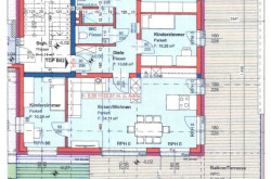 Raumaufteilung: Wohnküche, Schlafzimmer, 2 Kinderzimmer, Bad mit Wanne und Dusche, WC, Abstellraum und Diele