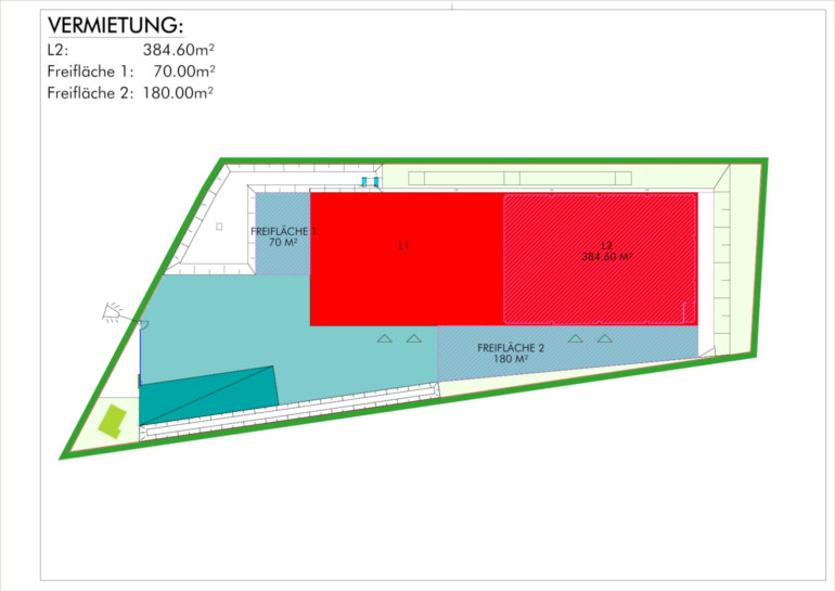 Bei Bedarf können zusätzlich 2 Freiflächen mit 70 und 180 m² um € 1,--/m² angemietet werden.