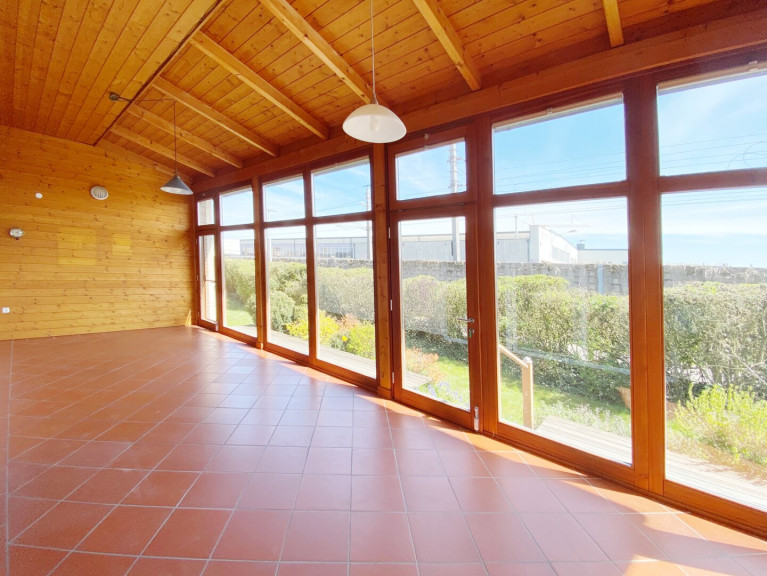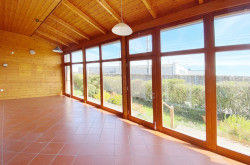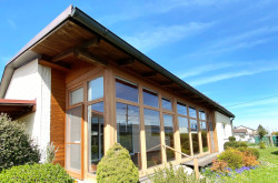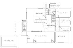 Raumaufteilung: Küche, 35 m² großes Wohnzimmer mit 32 m² Wintergarten, 3 Zimmer, Bad mit Wanne und Dusche, WC, Vorraum, Windfang