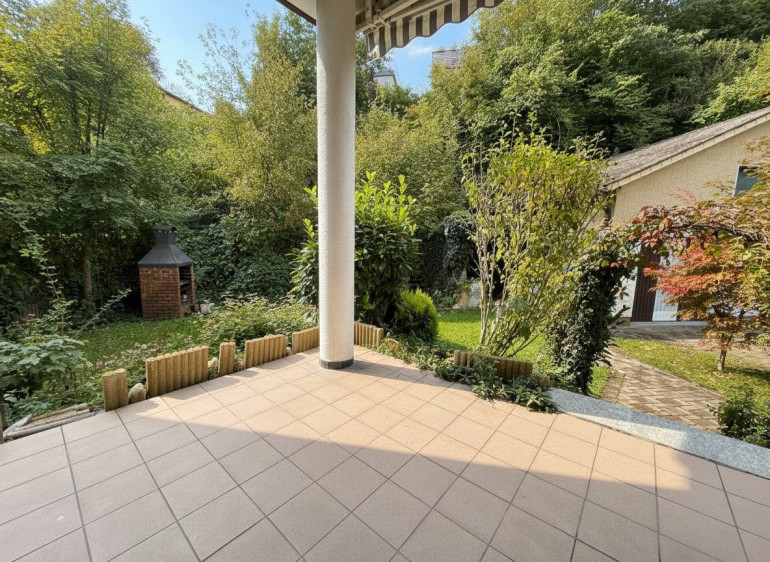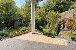 Der Garten hat eine angenehme Größe und ist kaum einsehbar. Hinter der Doppelgarage erhebt sich eine relativ steile Böschung, die durch die dichte Bepflanzung ebenfalls einen guten Sichtschutz bildet.