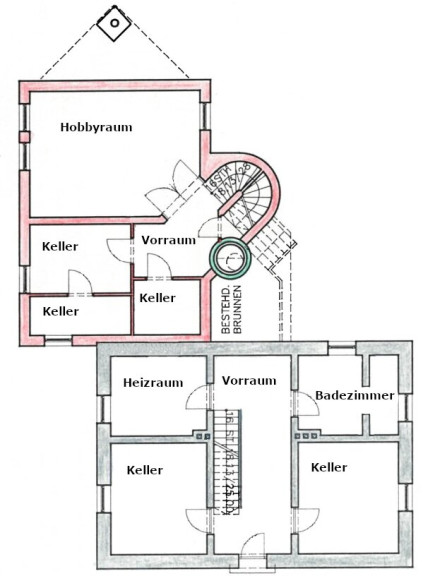 Keller: Bad, Waschküche, Lager, Werkstatt, Heizraum, Vorraum