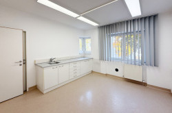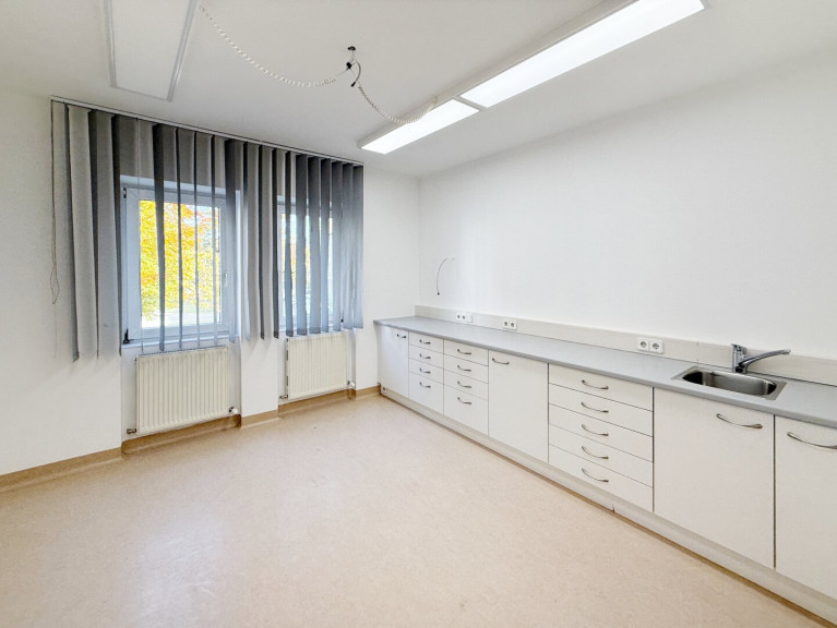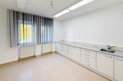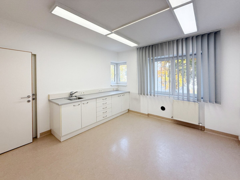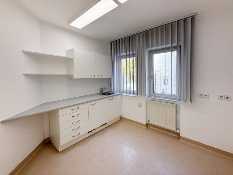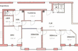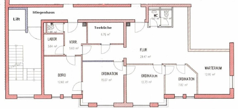 Raumaufteilung: 4 Ordinations-/Büroräume, Wartebereich, Labor, Teeküche, 2 WCs, Empfang und Flur