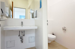 Die Praxis liegt im 1. Obergeschoss und ist mit einem Personenaufzug erreichbar, allerdings nicht ganz barrierefrei, da dieser Lift im Halbstock startet.
