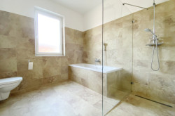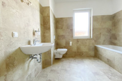 Das Badezimmer ist mit Badewanne und Dusche ausgestattet und über ein eigenes Fenster gut belüftbar.