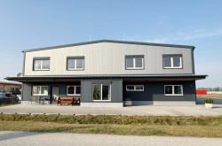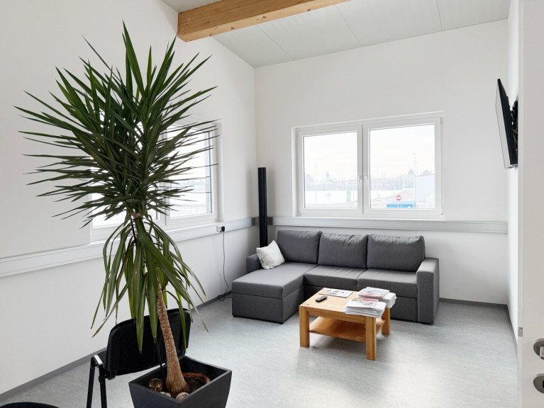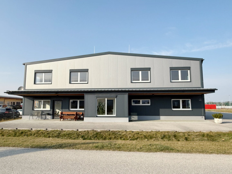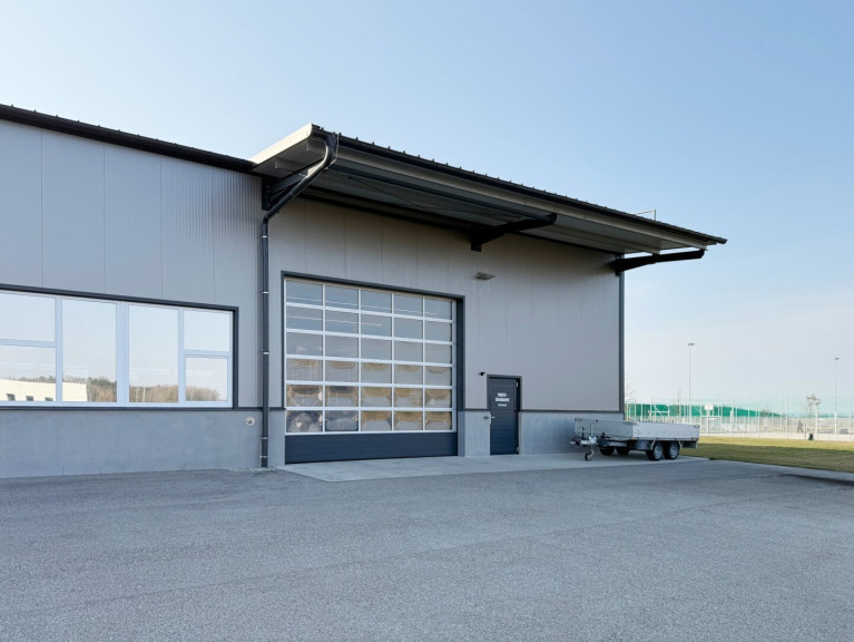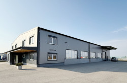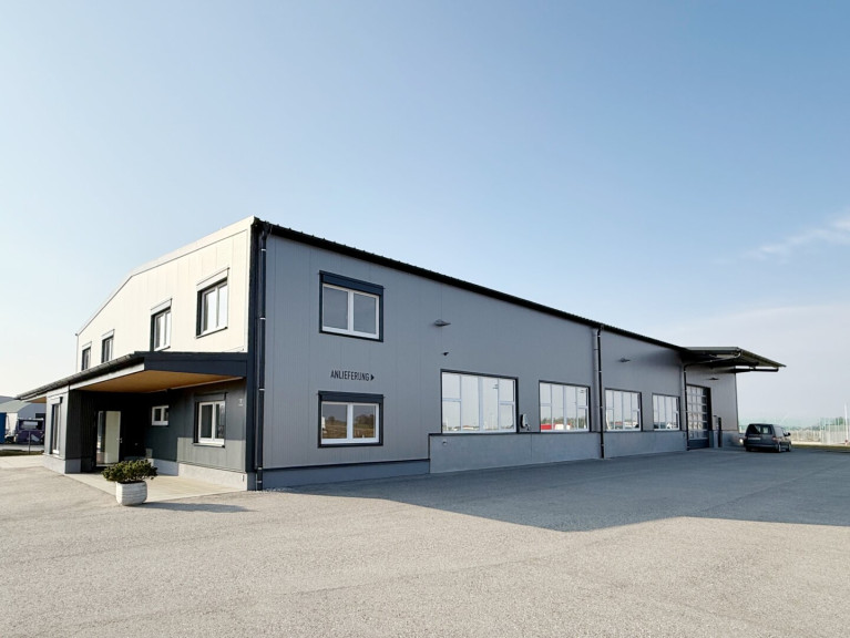 Dieses Betriebsgebäude wurde 2021 errichtet und besteht aus der ca. 656 m² großen Halle, ca. 70 m² Büroräumen im 1. Obergeschoss und rund 147 m² Nebenflächen (Sanitär-, Sozial- und Technikräume, Archiv u.ä.)