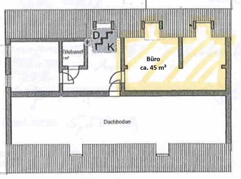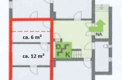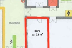 ca. 26 m² im Erdgeschoss, 2 Räume + 6 m² geteilter Vorraum (Kunden-Wartebereich)