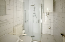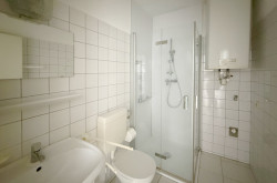 Das Badezimmer wurde mit einer neuen Dusche ausgestattet, ein Anschluß für die Waschmaschine ist vorhanden.
