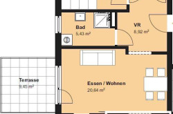 Die Wohnung befindet sich im EG, barrierefrei, 70,12 m², zuzüglich Terrasse und Garten, Autoabstellplatz und Kellerabteil.