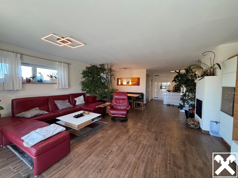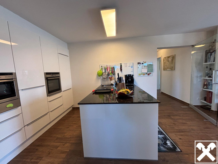 Der lichtdurchflutete Wohn- und Essbereich bildet das Herzstück des Hauses und lädt zum Entspannen und Verweilen ein. Die hochwertige Küche sowie eine zusätzliche Hauswirtschaftsküche sorgen für optimale Funktionalität im Alltag.