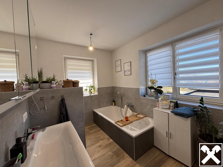 Das Haus ist voll unterkellert und bietet somit zusätzlichen Stauraum oder vielfältige Nutzungsmöglichkeiten. Eine Doppelgarage rundet das Angebot ab und sorgt für bequemes Parken direkt am Haus.