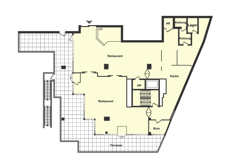 - ca. 517 m² Gesamtfläche (ca. 361 m² Restaurantfläche, ca. 156 m² Terrasse)