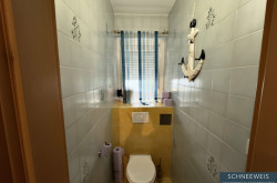 Das Badezimmer ist mit einer Badewanne sowie einem Waschmaschinenanschluss ausgestattet und verfügt über ein Fenster, welches eine natürliche Belichtung und Belüftung (Fensterlüftung) ermöglicht. Die davon getrennt angeordnete Toilette ist ebenfalls mit einem Fenster zur natürlichen Belüftung versehen und vervollständigt dieses insgesamt als familiengerecht zu beurteilende Wohnungsangebot. Darüber hinaus ist der Wohnung ein persönliches Kellerabteil zugeteilt, welches zusätzlichen Stauraum bietet.