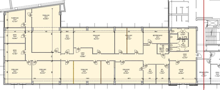 - aktuell 15 Büros, von ca. 11m²- ca. 61m² - hier sind noch Büro-Teilungen möglich