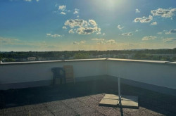 Ein besonderes Highlight dieser Wohnung ist die Dachterrasse, die Ihnen nicht nur einen schönen Ausblick bietet. Die Wohnung verfügt zudem über ein modernes Badezimmer mit Badewanne.