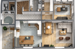 Das Erdgeschoss überzeugt durch eine praktische und familienfreundliche Gestaltung. Herzstück ist die großzügige, im Jahr 2024 renovierte Küche im Landhausstil mit Kücheninsel, Essbereich und Fußbodenheizung. Ergänzt wird diese Ebene durch ein helles Wohnzimmer, ein Gästezimmer beziehungsweise Homeoffice, ein Badezimmer mit Dusche und Wäschebereich, ein separates WC, eine Speis, einen Abstellraum sowie einen einladenden Vorraum.