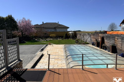 Das großzügige Grundstück (ca. 1700 m²) bietet einen gepflegten Außenbereich mit Pool und gepeflegtem Garten.
