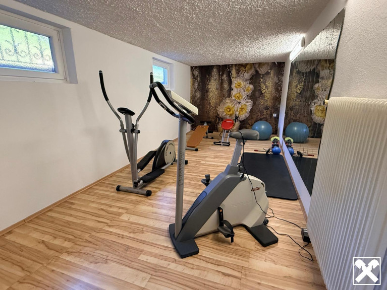 Voll unterkellert mit Garage, Fitnessraum und Stauraum.