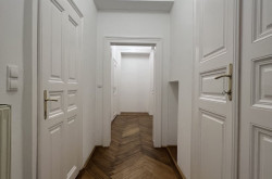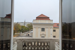 Besonderes Highlight sind die zwei Balkone. Während einer zum ruhigen Innenhof orientiert ist, bietet der Hauptbalkon eine erhabene Aussicht direkt auf den Schwarzenbergplatz. Dieser „Logenplatz“ eignet sich perfekt für kurze Pausen oder um Gäste in einem beeindruckenden Rahmen zu empfangen.