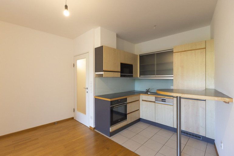 Wohnzimmer mit offener Küche und Zugang zur Loggia/Balkon, Schlafzimmer mit Zugang zur Loggia/Balkon, Vorzimmer,