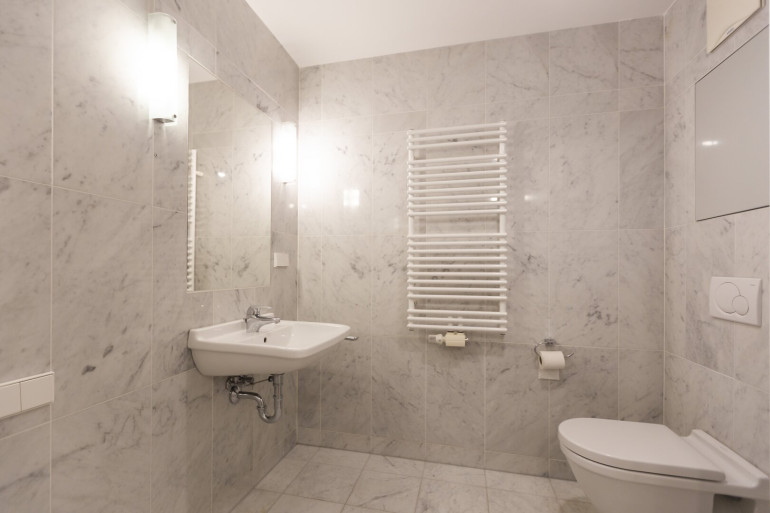 Bad mit Dusche, Waschmaschinenanschluss und WC,